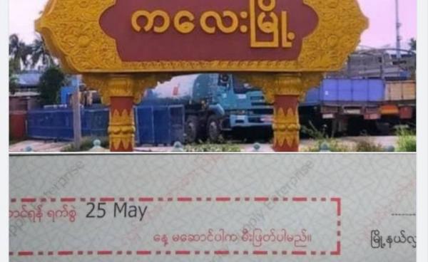 ကလေးမြို့အနောက်ဘက် တာဟန်းရပ်ကွက်ရှိ နေအိမ်တစ်လုံးပေါ်သို့ ယမန်နေ့ (မေလ ၂၅) ည ၈ နာရီခွဲဝန်းကျင်ခန့်က လက်နက်ကြီးကျည် ကျရောက်ပေါက်ကွဲကာ...