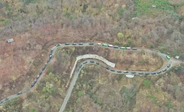 ချင်းပြည်နယ်တောင်ပိုင်း မင်းတပ်မြို့မှ မတူပီမြို့သို့ ထွက်ခွါသည့် တင့်ကား ၂ စီးပါ စစ်ကောင်စီယာဉ်တန်းနှင့် CDF-Mindat တပ်ဖွဲ့တို့ မတ်လ ၂၆ ရက်နေ့ကစ၍...