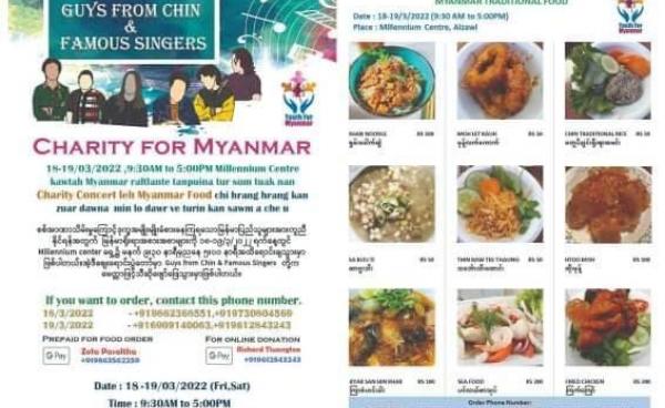 မီဇိုရမ်ပြည်နယ်ရောက် Youth For Myanmar အဖွဲ့ကဦးဆောင်ပြီး မြန်မာစစ်ဘေးရှောင်များ ကူညီထောက်ပံ့နိုင်ရ န်အတွက်ဒုတိယအကြိမ် ရံပုံငွေစျေးရောင်းပွဲတော်ကို...
