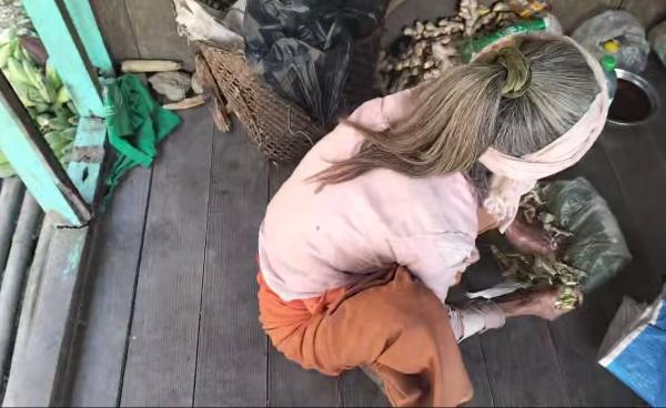 ပုံစာ - စားစရာမရှိ၍ အသီးအရွက်ကိုသာ တနှစ်ခန့်အကြာ စားသောက်နေရသည့် မင်းတပ်ဒေသခံ အဘွားအိုတစ်ဦး။ ချင်းပြည်နယ်တောင်ပိုင်း၊ မင်းတပ်မြို့နယ်ထဲတွင်...