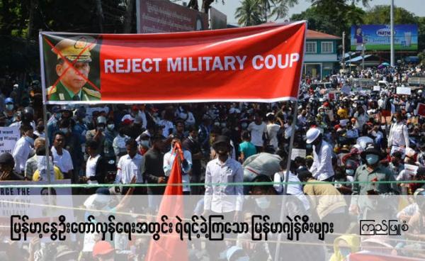 ဒေါ်အောင်ဆန်းစုကြည်ခေါင်းဆောင်သော ဒီမိုကရေစီအရပ်သားအစိုးရကို ဖြုတ်ချပြီးသည့် ဖေဖော်ဝါရီလဆန်းပိုင်းကစပြီး စစ်အာဏာသိမ်းမှုဆန့်ကျင်ဆန္ဒပြပွဲများ...