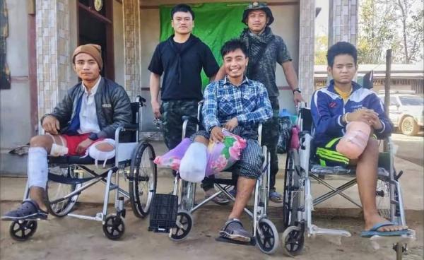 ပြီးခဲ့တဲ့ ဖေဖော်ဝါရီလ ၁၁ ရက်က ကရင်နီပြည်နယ်ဒီးမော့ဆိုတိုက်ပွဲအတွင်း ခြေထောက်တစ်ဖက်စီ ဆုံးရှုံးခဲ့ရတဲ့ KNDF-BO1 တပ်ဖွဲ့ဝင်ရဲဘော်သုံးဦးက...
