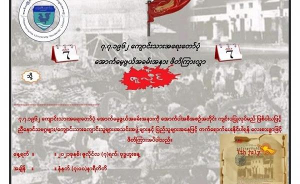 ၁၉၆၂ ကျောင်းသားအရေးတော်ပုံ အောက်မေ့ဖွယ်ဖြစ်သည့် ၇ ဇူလိုင်အခမ်းအနားကို လာမည့် ဇူလိုင်လ (၇) ရက်နေ့တွင် ပြည်သူများ၊ ကျောင်းသား/သူများကလည်း...