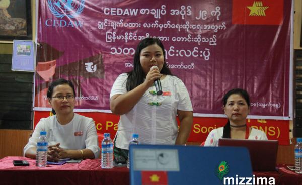အမျိုးသမီးများအား နည်းမျိုးစုံဖြင့် ခွဲခြားမှုပပျောက်ရေး သဘောတူညီချက်စာချုပ် (CEDAW) အပိုဒ် (၂၉) ကို အမျိုးသမီးများနေ့တွင် မြန်မာအစိုးရမှ...