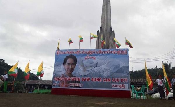 ရခိုင်ပြည်နယ်အရေးနှင့် ပတ်သက်၍ ဆောင်ရွက်နေသော ဒေါ်အောင်ဆန်းစုကြည်ကို ထောက်ခံကြောင်း ထောက်ခံပွဲကို ကချင်ပြည်နယ် ဖားကန့်မြို့ ဒေသခံများ အောက်တိုဘာလ ၂၁...