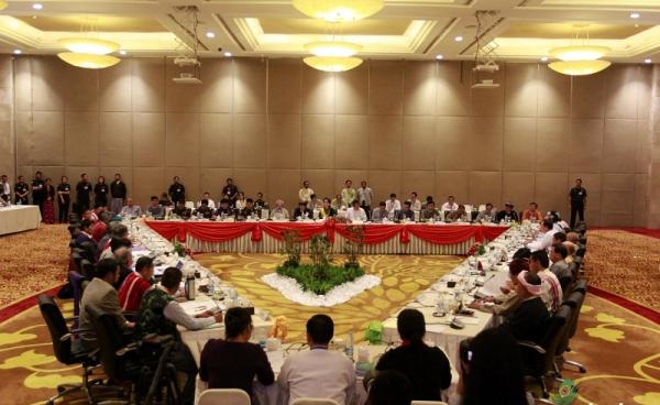 တိုင်းနှင့်ပြည်နယ်များတွင် ကိုယ်ပိုင်ဖွဲ့စည်းပုံအခြေခံဥပဒေရေးဆွဲရန် နေပြည်တော်တွင် ယနေ့ကျင်းပသည့် ပြည်ထောင်စုငြိမ်းချမ်းရေးဆွေးနွေးမှုပူးတွဲကော်မတီ...