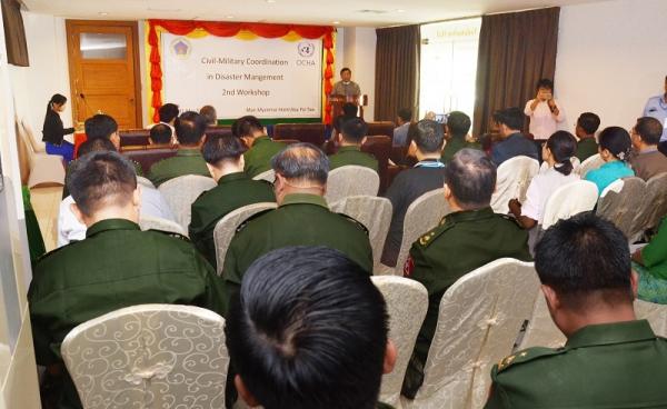 သဘာဝဘေးအန္တရာယ်စီမံခန့်ခွဲရေးလုပ်ငန်းများတွင် အရပ်ဘက်-စစ်ဘက် ပူးပေါင်းဆောင်ရွက်ရေး အလုပ်ရုံဆွေးနွေးပွဲကို နေပြည်တော်ရှိ မန်းမြန်မာဟိုတယ်တွင် မတ်လ...