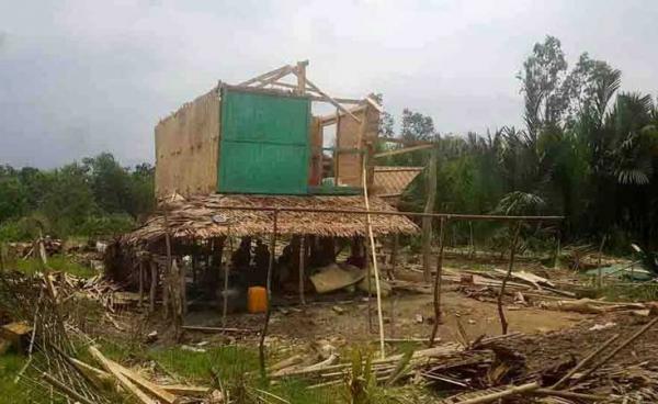 ရခိုင်ပြည်နယ်၊ မြောက်ဦးမြို့နယ်အတွင်း လေဆင်နှာမောင်း တိုက်ခတ်မှုကြောင့် ကျေးရွာနှစ်ရွာမှ လူနေအိမ်နှင့် အဆောက်အဦးများ ပျက်စီးသွားခဲ့သည့်အတွက် လေဘေး...