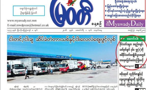 ကရင်ပြည်နယ်၊ ဘားအံအခြေစိုက် ဖားစည်သံဂျာနယ်၏ ထုတ်ဝေသူ အယ်ဒီတာချုပ် ဦးဇော်ရဲထက်အား ပြည်နယ်ရဲတပ်ဖွဲ့မှူး ရဲမှူးကြီး စိန်လွင်က တရားလိုပြု၍...
