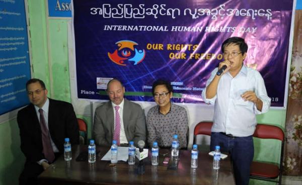 ရန်ကုန်မြို့တွင် အပြည်ပြည်ဆိုင်ရာလူ့အခွင့်အရေးနေ့ အခမ်းအနားကို အထက်ကြည့်မြင်တိုင်လမ်းရှိ Saint Michael Anglican Church တွင် မူလကစီစဉ်ထားသော်လည်း...