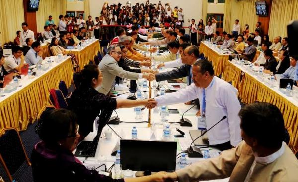 တစ်နိုင်ငံလုံးအပစ်ရပ်စာချုပ်မူကြမ်း (NCA) လက်မှတ်ရေးထိုးရာတွင် အားလုံးပါဝင်ရေး ဆိုသည့် အချက်အပေါ် သမ္မတအပါအဝင် အစိုးရအဖွဲ့ထိပ်သီးနှင့် လက်နက်ကိုင်...
