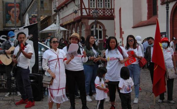 ဂျာမဏီနိုင်ငံရောက် မြန်မာနိုင်ငံသားများက အကြမ်းဖက်စစ်ကောင်စီကို ဆန့်ကျင်ပြီး သံအမတ်ကြီး ဦးကျော်မိုးထွန်းကို ထောက်ခံကြောင်း ပြသရန် ဖရန်ဖို့ (Frankfurt...