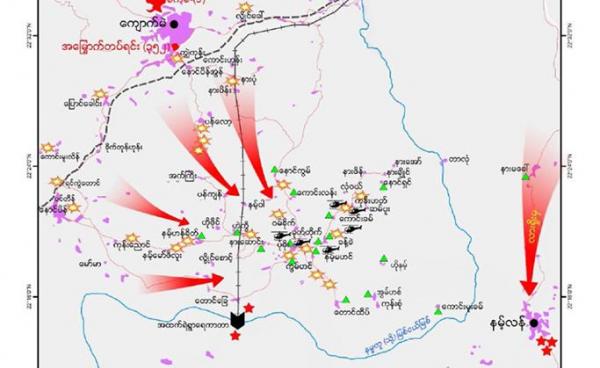 ရှမ်းပြည်နယ်မြောက်ပိုင်း၊ ကျောက်မဲမြို့နယ် တောင်ပိုင်းဒေသရှိ ရှမ်းပြည်ပြန်လည် ထူထောင်ရေးကောင်စီ (RCSS/SSA) တပ်စခန်းများကို တပ်မတော်က တိုက်ခိုက်ရာတွင်...