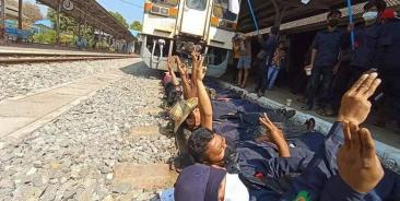 ၂၀၂၁ ခုနှစ်၊ ဖေဖော်ဝါရီလ ၁ ရက်နေ့ မြန်မာနိုင်ငံ၌ မြန်မာစစ်တပ်အာဏာသိမ်းပြီးနောက် ၂ ရက်အကြာတွင် ရွေးကောက်ခံ အရပ်သားအစိုးရအားဖြုတ်ချခဲ့သော စစ်တပ်၏...