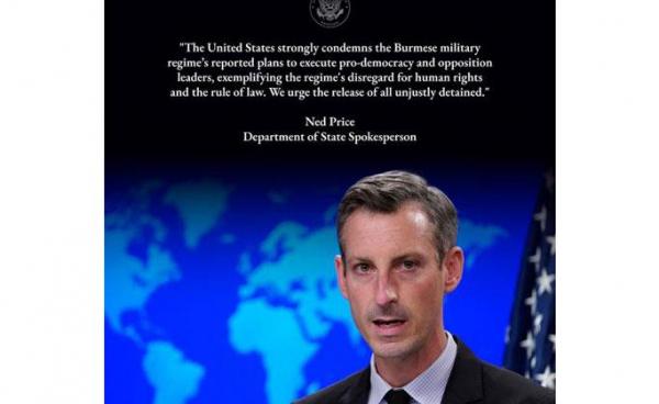 အာဏာသိမ်းစစ်ကောင်စီက ကိုဂျင်မီ၊ ကိုဖြိုးဇေယျာသော် အပါအဝင် လူလေးဦးကို ကွပ်မျက်ရန် ဆုံးဖြတ်လိုက်ခြင်းအပေါ် ပြင်းထန်စွာရှုတ်ချကြောင်း ဇွန်လ ၆ရက် နေ့တွင်...