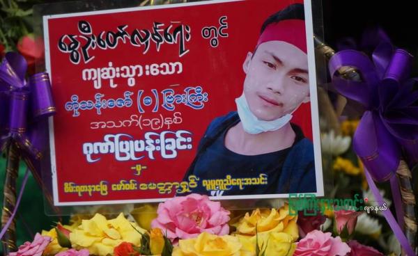 ကချင်ပြည်နယ် ၊ ဖားကန့်မြို့မှာ မတ်လ (၂၇) ရက်နေ့က ရဲနဲ့စစ်သားတွေရဲ့ ပစ်ခတ်ဖြိုခွင်းခဲ့မှုကြောင့် အေးမြသာယာသပိတ်စစ်ကြောင်းမှာလိုက်ပါခဲ့တဲ့ ကိုသန်းဇော်...