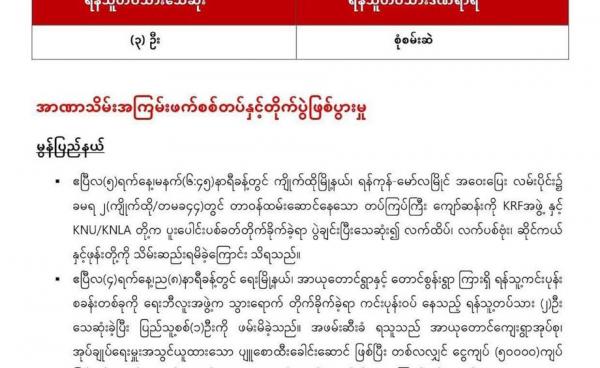 ကချင်ပြည်နယ်၊ ရွှေကူမြို့နယ်အတွင်းက ကျေးရွာတွေမှာ စစ်ကောင်စီဘက်ကနေ လေယာဉ်နဲ့ ဗုံးကြဲတိုက်ခိုက်နေတာကြောင့် ကျေးရွာ ၃၇ ရွာက ဒေသခံတွေ ဘေးလွတ်ရာကို...