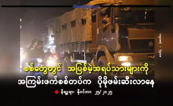 စစ်ကော်မရှင်ထိန်းချုပ်ထားဆဲ ရခိုင်ပြည်၊ စစ်တွေမြို့တွင် အပြစ်မဲ့အရပ်သားများအား အကြမ်းဖက်စစ်တပ်က ပိုမိုဖမ်းဆီးလာနေသည်ဟု သိရသည်။ ယမန်နေ့ နိုဝင်ဘာ ၂၄...