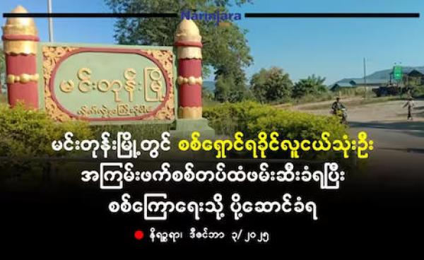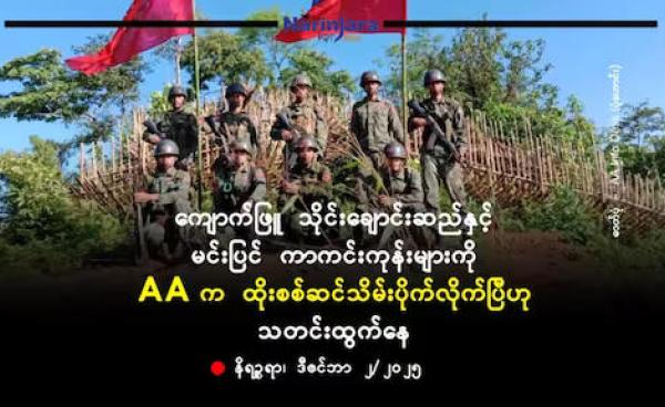 ကျောက်ဖြူမြို့နယ်၊ မင်းပြင်ရွာမှာဝင်ရောက်ခြေကုပ်ယူထားသည့် စစ်အုပ်စု၏ စစ်ကြောင်းနှစ်ကြောင်းထဲက တစ်ကြောင်းကို ယနေ့ နေ့လယ်က အာရက္ခတပ်တော် (AA) မှ...
