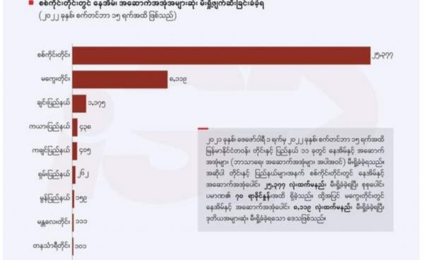 စစ်အာဏာသိမ်းပြီးနောက် ဖြစ်ပွားခဲ့သည့် လက်နက်ကိုင် ပဋိပက္ခကြောင့် ၂၀၂၁ ခု နှစ် ဖေဖော်ဝါရီလ ၁ ရက်နေ့ ယခုလ စက်တင်ဘာ ( ၁၅) ရက်နေ့ အထိ နိုင်ငံအဝန်းရှိ...