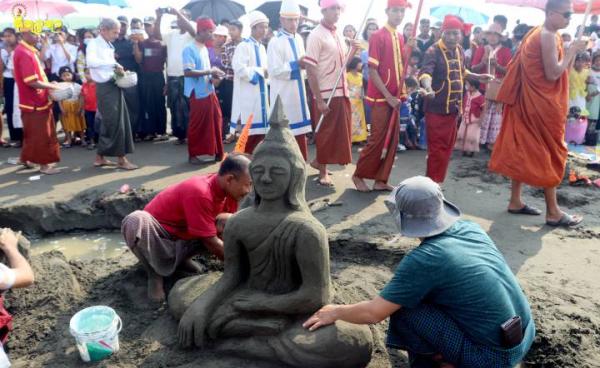 ရခိုင်ပြည်နယ်၊ စစ်တွေမြို့ရှိ စစ်တွေကမ်းခြေတွင် ပြုလုပ်ခဲ့သည့် ရခိုင်ရိုးရာသဲပုံစေတီတော်ပွဲ(ခေါ်)သျှစ်သောင်းမြှောက်ပွဲကို လူပေါင်း...