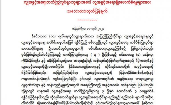 ထွန်းခိုင်၊ ဇော်ဝင်းဌေး — ဒီဇင်ဘာလ (၁ဝ) ရက်နေ့က စစ်တွေမြို့တွင် အပြည်ပြည်ဆိုင်ရာ လူ့အခွင့်အရေးနေ့ အထိမ်းအမှတ် လှုပ်ရှားမှုပြုလုပ်၍ ငြိမ်စုစီဥပဒေပုဒ်မ...