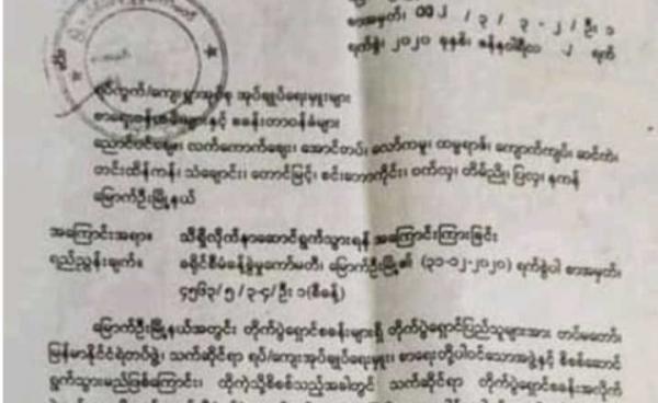 ရခိုင်ပြည်နယ်၊ တောင်ကုတ်မြို့နယ်၊ လမူးကျေးရွာမှ သစ်အရောင်းအဝယ်လုပ်သူတစ်ဦးကို အမည်မသိလူ တစ်စုက ဇန်နဝါရီလ ၄ ရက်နေ့ ဖမ်းဆီးခေါ်ဆောင်သွားကြောင်း...