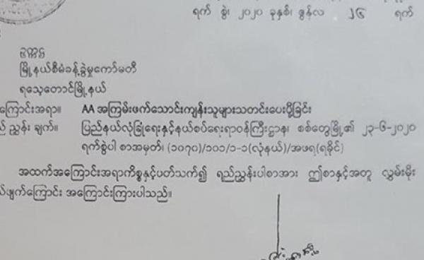 ခိုင်လူလှ — ရခိုင်ပြည်နယ်၊ ရသေ့တောင်မြို့နယ်၊ မူစဲကမ်းရှိ ကူတောင်၊ ရွှေလောင်းတင်၊ ကံပြင်၊ မြင်းကန်းချာင်း အပါအဝင် ကျေးရွာ (၆) ရွာမှ ရွာသားများသည်...