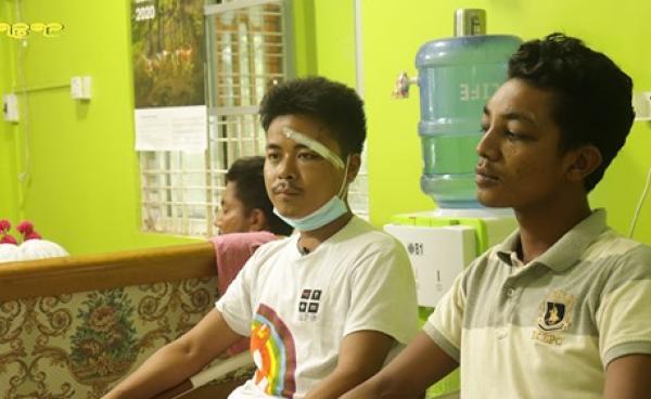 ထွန်းခိုင် — ရခိုင်ပြည်နယ်၊ မြေပုံမြို့နယ်၊ စညင်းကျေးရွာအနီး မိုင်းပေါက်ကွဲမှုဖြစ်ပွား၍ ညာဖက်ခြေမျက်စိအထက်နားက ပြတ်ထွက်သွားသူ အမျိုးသမီး၏ ခြေထောက်ကို...