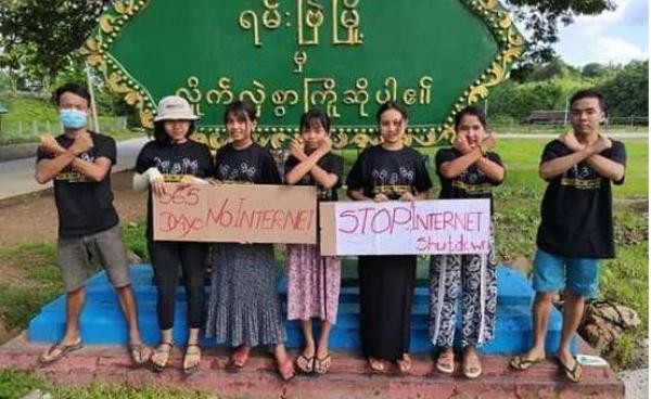 သျှင်မင်းဇံ — အင်တာနက်ပိတ်ဆို့မှု တစ်နှစ်ပြည့်နေ့တွင် အင်တာနက်ပြန်ဖွင့်ပေးရန် တီရှပ်အင်္ကျီများဝတ်၍ လူပ်ရှားမှု ပြုလုပ်ခဲ့သဖြင့် အမှုဖွင့်...