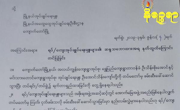 ရခိုင်ပြည်နယ်၊ ကျောက်တော်မြို့နယ်မှ ကျေးရွာအုပ်ချုပ်ရေးမှူးတစ်ဦးနှင့် ကျေးရွာတာဝန်ခံတစ်ဦးတို့အား ဖမ်းဆီးချုပ်နှောင်ထားသည့်ကိစ္စနှင့်ပတ်သက်ပြီး...