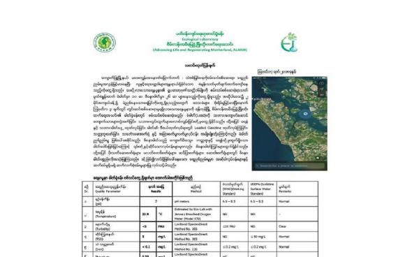 ရခိုင်ရှိ မြစ်ကြောင်းတစ်ချို့ ဖြစ်ပေါ်နေသော ရေထုညစ်ညမ်းမူ၊ အရောင်ပြောင်းလဲမှုနှင့် ပတ်သက်ပြီး အစိုးရ ထုတ်ပြန်ချက်နှင့် စိမ်းလန်းအမိမြေ ဖွံ့ဖြိုး...