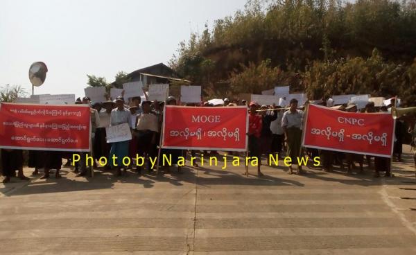 CNPC တရုတ်ကုမ္ပဏီနှင့် MOGE မြန်မာ့ရေနံနှင့် သဘာဝဓါတ်ငွေ့ လုပ်ငန်းတို့ကို ၎င်းတို့၏ အခြေစိုက်ရုံးတည်ရှိရာ တောင်စောက် စခန်းတွင် အမ်းဒေသခံ...
