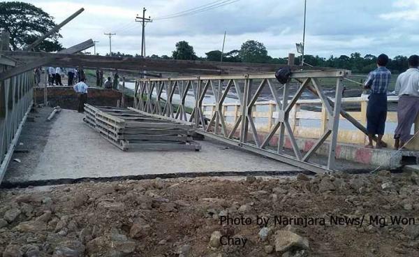 ရခိုင်ပြည်နယ်တွင် မကြာသေးမီရက်ပိုင်းအတွင်းက မိုးသည်းထန်စွာ ရွာသွန်းပြီး ရေကြီးရေလျှံမှု ဖြစ်ပေါ်ခဲ့ခြင်းကြောင့် ကျိုးပျက်သွားသော တံတားများကို...