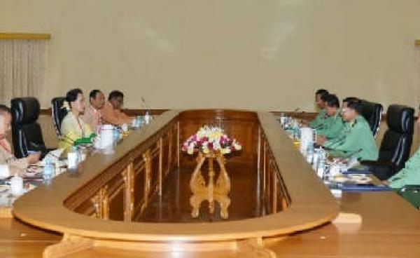 တပ်မတော်ကာကွယ်ရေးဦးစီးချုပ် ဗိုလ်ချုပ်မှူးကြီး မင်းအောင်လှိုင်နှင့် အမျိုးသားဒီမိုကရေစီအဖွဲ့ချုပ် ဥက္ကဋ္ဌ ဒေါ်အောင်ဆန်းစုကြည် တို့သည် ယနေ့မွန်းလွဲ ၂...