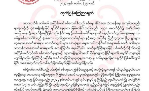 ရခိုင်ပြည်၊ မောင်တောမြို့ ခရိုင်ပြည့်သူ့ဆေးရုံကြီးမှ ဆေးရုံအုပ်ဒေါက်တာ နုကေသီစံနှင့် သမားတော် ဒေါက်တာအောင်နိုင်လင်းတို့ကို စစ်ကောင်စီမှ ပြီးခဲ့သည့်...
