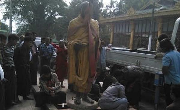 ကမ္ဘာသာသနပြု ဆရာတော် အသျှင် စန္ဒြမဏိ ရုပ်ထုကို စစ်တွေမြို့ ၀င်္ကဘာကွင်းရှိ ဘုရားကြီးတွင် သိမ်းဆည်းထားရာမှ စစ်တွေမြို့တွင် အပူဇော်ခံပြီး ဆရာတော်...