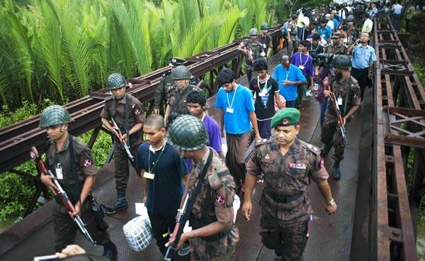 မြန်မာနိုင်ငံ အနောက်ဘက်နယ်စပ် မောင်တောခရိုင် တောင်ပြို လက်ဝဲမြို့နယ်ခွဲတွင် ထိန်းသိမ်းထား သော ဘင်္ဂလားဒေ့ရှ် နိုင်ငံသား ၁၀၃ ဦးကို မြန်မာဘက်က...