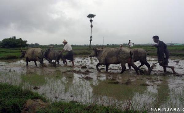 ရေဘေးသင့် ဒေသများတွင် ပျက်စီးသွားသော လယ်များကို ပြန်လည်ထွန်ယက်ပေးရန်အတွက် ပြည်ပအခြေစိုက် United League of Arakan (ULA) မှ ကူညီလှူဒါန်းထားသော လက်တွန်း...