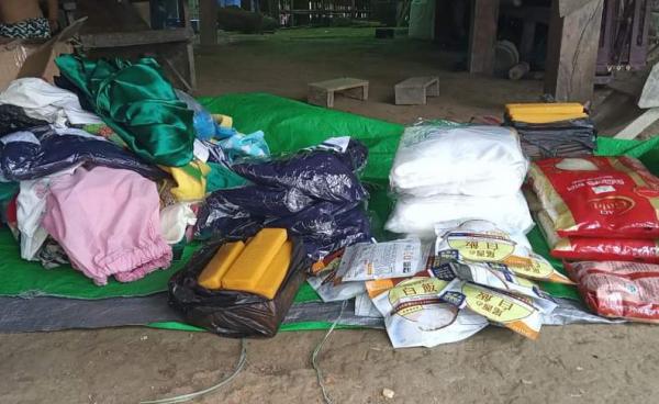 ရခိုင်ပြည်နယ်၊ ပုဏ္ဏားကျွန်းမြို့နယ်၊ ဂဏန်းတောင်ကျေးရွာတွင် လူဦးရေ ၈ဝဝ ခန့်အတွက် စစ်ကောင်စီက ကယ် ဆယ်ရေး ပစ္စည်းများပေးရာ၌ ဆန် နို့ဆီဗူး ၂၄ ဗူးနှင့်...