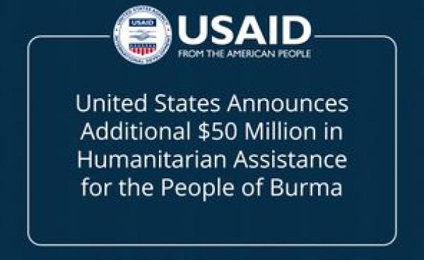 မြန်မာနိုင်ငံအတွက် လူသားချင်းစာနာမှုဆိုင်ရာအကူအညီ ဒေါ်လာသန်း (၅၀) အသစ်ထပ်မံ ထောက်ပံ့ကြောင်း ရန်ကုန်မြို့ရှိ အမေရိကန် သံရုံးက ဖေဖော်ဝါရီ ၁၆ ရက်က...