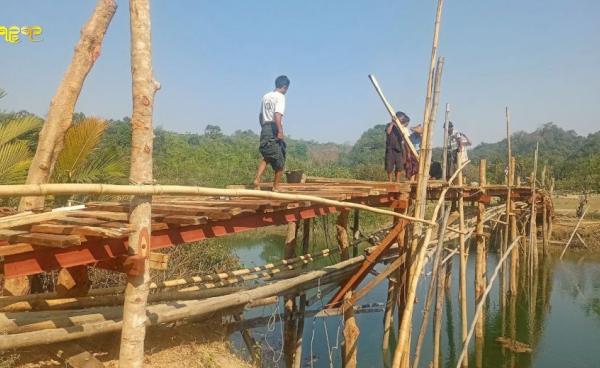 ရခိုင်ပြည်နယ် ပုဏ္ဏားကျွန်းမြို့နယ်တွင် ကျေးရွာ ၅ ရွာကို ဆက်သွယ်ထားသည့် တံတားကို စစ်အစိုးရက ဘတ်ဂျက် မချပေး၍ ဒေသခံများ ကိုယ်ထူကိုယ်ထ...