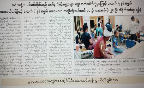 ယနေ့ထုတ် စစ်ကောင်စီ မီဒီယာ မြန်မာ့အလင်းသတင်းစာတွင် မောင်တောမြို့နယ် မြောက်ပိုင်း ဂြစ်ချောင်းကျေးရွာကို ကျရောက်သည့် လက်နက်ကြီးကျည်များမှာ အေအေအဖွဲ့က...