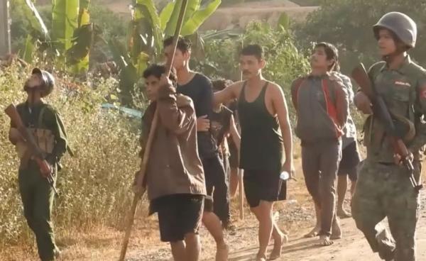 ရခိုင်ပြည်တွင် တိုက်ပွဲများကြောင့် ဒေသခံပြည်သူများ ပြည်မဘက်သို့ စစ်ဘေးရှောင်သွားရာတွင် ဖြတ်သန်း သွားရာ စစ်ကောင်စီဂိတ်များ၌ အမျိုးသမီးငယ်တချို့...