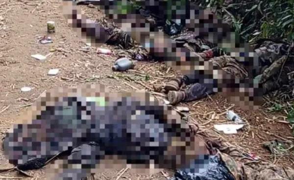 ရခိုင်ပြည်၊ ဂွမြို့နယ်၊ ကုလားပြင်ကျေးရွာသင်္ချိုင်း၌ စစ်ကောင်စီဘက်က သေဆုံးသွားခဲ့သည့် အလောင်းအများအပြားကို ပြည်သူ့စစ်နှင့် စစ်တပ် ထောက်ခံ...