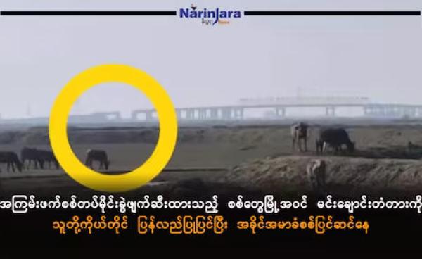 ရခိုင်ပြည်၊ စစ်တွေမြို့ကို အာရက္ခတပ်တော်(AA)က ဝင်တိုက်မည်ကို အလွန်စိုးရိမ်၍ အကြမ်းဖက်စစ်တပ်က မိုင်းခွဲဖျက်ဆီးထားသည့် စစ်တွေမြို့အဝင်...