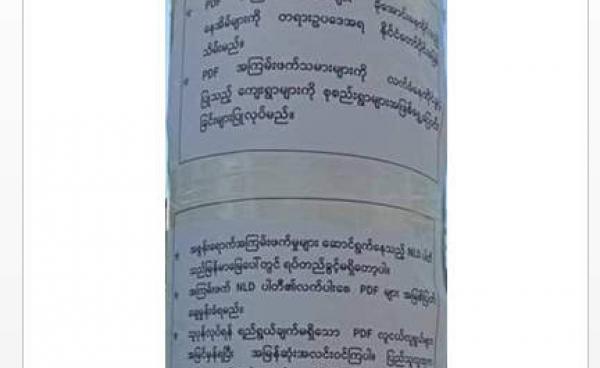 မကွေးတိုင်း သရက်ခရိုင် ကံမမြို့နယ်အတွင်းက ကျေးရွာအချို့တွင် “NLD ပါတီ၏ လက်ပါးစေ PDF ကို အမြစ် ပြတ်ချေမှုန်းမည်” ဆိုသည့် စာသားများပါသည့် စာရွက်များကို...