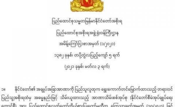 နိုင်ငံတော်အစိုးရ၏ လုပ်ငန်းတာဝန်များကို ဆောင်ရွက်နိုင်ရန် ခေတ္တပြည်ထောင်စု ဝန်ကြီးများကို ပြည်ထောင် စု လွှတ်တော်ကိုယ်စားပြုကော်မတီ CRPH က ခန့်အပ်...