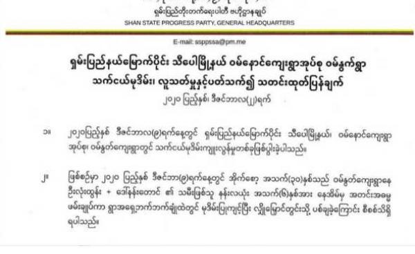 လာမည့် အစိုးရသက်တမ်းတွင် တိုင်းရင်းသား နိုင်ငံရေး ပါတီများကို နေရာပေးရန် အပါအဝင် တန်းတူရေး ကိုယ်ပိုင်အုပ်ချုပ်ရေး နှင့် ဖက်ဒရယ်ပြည်ထောင်စု...