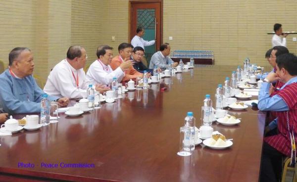 ငြိမ်းချမ်းရေး ညီလာခံတက်ရောက်လာသည့် ကရင်နီအမျိုးသားတိုးတက်ရေးပါတီ (KNPP) နှင့် ငြိမ်းချမ်းရေး ကော်မရှင်တို့ ဇူလိုင် ၁၂ ရက်နေ့တွင်...